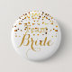 Il s'agit de Parties scintillant blanche Faux Foil mariage équipe mariée boutons avec le texte de l'ombre portée en Or. Il est préférable pour la fête de la mariée de porter à la fête de la bachelorette, la douche de la nuptiale, la répétition du mariage, les wedding showers, les déjeuners et le dîner de répétition.