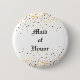 Voici le bouton Gold Parties scintillant Faux Foil Maid of Honor. C'est une façon parfaite d'honorer votre bonne d'honneur pour votre dîner de répétition ou la fête de bachelorette.Ceci est Modern Elegant Gold Parties scintillant confetti faux feuille Maid of Honor modèle cadeau. C'est une élégante idée de mariage. Vous pouvez impressionner votre famille et vos amis avec ce design élégant et élégant. Il est entièrement personnalisable. Il est facile à utiliser et facile à personnaliser.
