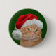 Bouton de Noël pour chat tabby orange dans un chapeau de Père Noël
