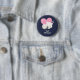 Bouton avec une adorable illustration graphique. Un chaton blanc avec une jolie image empreinte de patte sur sa fourrure. Dormir tranquillement. Un grand coeur rose derrière elle et quelques petites étoiles aussi. Texte : Personne de chat. Arrière - plan bleu foncé.
