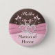 Badge Rond 5 Cm Pin rose, Brown de florale
