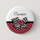 Obtenez girly avec ce mignon bouton motif pois rouge et blanc avec un arc chevron noir et blanc tendance et un rose ruban rouge chic. Personnalisez ce rétro rouge et noir répond au design moderne en ajoutant le nom de votre ado fille. Image imprimée plate, PAS le ruban de rosette réel et l'arc.