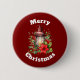 Un bouton avec une image de Noël cosy avec une lanterne rouge entourée de pin et un poinsettia et saint.