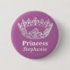 Jolie goupille de bouton faite dans le rose rose, avec une photo d'une couronne de diamant. Le texte blanc audacieux lit, princesse, et le nom est en texte italique blanc sous lui. Personnalisez le texte pour lire quelque chose que vous voulez. Grand pour la fête d'anniversaire de votre petite princesse.