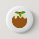 Badge Rond 5 Cm Pudding de Noël traditionnel. En blanc.