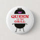 Badge Rond 5 Cm Reine Du Grill, Rouge Couronne Rose