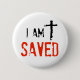 Des caractéristiques de conception ce l'expression chrétienne, "je suis sauvé" dans les lettres rouges et noires, avec une croix noire.