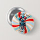 Bouton garçon d'anniversaire heureux personnalisé avec un thème robot. Les couleurs sont le bleu, le rouge et le noir. Un robot de dessin animé tenant des ballons rouges et bleus. Mignonne pour tout petit garçon qui aime les robots !