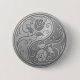 Caractéristiques de conception ce les belles de yin de yang deux ont stylisé les roses tribaux et ont l'aspect de l'gravure dans l'acier inoxydable. Les remous complexes décorent les deux côtés de ce symbole traditionnel créant un motif sensible. Les deux fleurs découlent du fond de la larme de chaque côté avec le feuille s'élevant des tiges. Les textures métalliques et la couleur argentée donnent à la conception un regard en acier fort. Ce yang unique de yin fait une conception renversante et élégante de bouton.