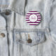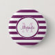 Un bouton de pinback chic violet et blanc de rugby rayé. Personnalisez ce motif dressé en ajoutant votre nom et votre initiale monogrammée. Ce monogramme mod fait partie de la collection de couleurs d'été Magenta Purple Stripes Personal Essentials.