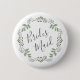 Bouton présente une couronne d'aquarelle feuillage dans les tons vert sauge et gris. Le texte dit "Femme domestique" en calligraphie de style écriture manuscrite gris fusain/noir. Voir notre collection Sage Greenery Botanical pour la coordination des dessins.