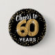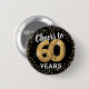 Bouton tendance noir et or soixantième anniversaire avec un arrière - plan noir qui peut être changé à n'importe quelle couleur, soixante ballons d'hélium or, élégante parties scintillant or, et le dicton "encourage à 60 ans".