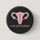 Un bouton d'appui avec un message à la Cour suprême des États-Unis et l'annulation de Roe v. Wade. Graphique en utérus rose avec "f*ck off SCOTUS"
