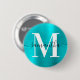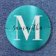 Badge Rond 5 Cm Signature Monogramme Turquoise Blue Shimmer Foil