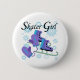 Notre Skater Girl design T-shirts, tasses, sacs, cartes, coussins, horloge murale, gardisakes, sweat - shirts à capuche et autres articles de patinage comporte une paire de patins et mitaines bleus et lavande sur une chaîne entourée de nombreux flocons de neige et texte qui lit Patineuse fille!