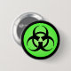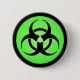 Symbole de danger biologique noir sur une épingle à bouton vert.