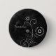 Bouton à motif floral noir et blanc de tableau noir et blanc. Personnalisez cet élégant accessoire de mode de tableau noir en ajoutant votre nom.