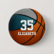 Cette équipe personnalisée couleurs basketball bouton pour les filles ou les garçons dispose d'un graphique de basketball simple avec des couleurs d'équipe turquoise et gris sur deux des panneaux de basketball et facilement personnalisable nom de joueur et grand numéro de maillot dans une police de style lettre de variété - par katz_d_zynes