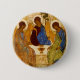 L'oeuvre/icône Antique Andrei Rublev représentant le Père, le Fils et le Saint-Esprit assis à une table. Les images semblent avoir des ailes d'anges.