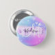 Bouton rose, violet, lilas, bleu et aqua unicorn arc-en-ciel coeur arrière - plan brillant. Votre nom personnalisé et votre monogramme sont écrits dans un élégant script écrit à la main avec un arrière - plan de rayures de pinceau violet lilas unicorn pinceau. Un cadeau d'anniversaire ou de Noël parfait !