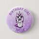Ajoutez le nom de votre fille à cette licorne mauve adorable avec papillon sur son nez, bouton "Fille d'anniversaire".