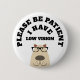 Très jolie illustration d'un Labrador Retriever portant des lunettes, Cette race est souvent utilisée par les personnes aveugles ou malvoyantes. Texte courbe au-dessus de la tête du chien : "Sois patient, j'ai une faible vision"