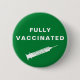 Montrez votre appréciation d'être complètement vacciné contre le covid-19 avec ce bouton vert amusant avec "Entièrement Vacciné" en typographie blanche simple et une seringue à aiguille avec "Covid-19" sur le étiquette.