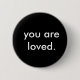 Créez votre propre bouton personnalisé "vous êtes aimé" accentué dans un design minimaliste moderne. Noir et blanc, chic, audacieux, tendance et élégant. Parfait pour toute personne pour lui rappeler que vous êtes tellement aimé - point final. Personnalisez mon modèle avec vos propres couleurs, texte et polices personnalisés.