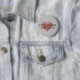 Un bouton de recul pour les amateurs de podcast de crime partout, avec un coeur d'empreintes rouges avec texte style machine à écrire.