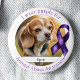 In the upper right of the border, a purple awareness ribbon adds a recognizable symbol of support and solidarity. At the center of the pin is a customizable photo area, giving you space to feature a captioned picture of your furry friend. Whether you add their name, a special date, or a short tribute, this personalized detail transforms the button into a powerful statement of love and protection. Perfect for awareness events, shelter fundraisers, or everyday advocacy, this pin helps you carry your message—and your pet—close to your heart.