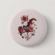 Button with a cute retro style carousel horse. Drawn in Pretty pink colors with fancy flowers.