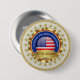 The design features a classic American flag centered within a bold royal blue ring. Encased in a brilliant gold-style sunburst and surrounded by a ring of 20 elegant gold stars, this button offers a premium, official appearance that stands out on any garment.