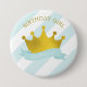 Badge Rond 7,6 Cm Bébé Bleu et Or Tiara "Fille d'anniversaire"