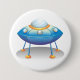 Badge Rond 7,6 Cm Blue Cartoon UFO Spaceship Fun Sci-Fi