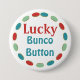 Le bouton chanceux coloré comporte un dessin géométrique graphique dans de rétros couleurs. Utilisez ce bouton de bonne chance à votre prochains événement de Bunco, tournoi du football, nuit de bingo-test, nuit de jeu, nuit de casino, manifestation sportive, élection, jeu de golf et plus. Changez le message textuel pour adapter votre propre personnalité !.