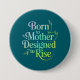 Bouton rond inspirant avec l'expression "Né à Mère, Conçu pour se lever" en dégradé pastel doux sur turquoise. Un accessoire significatif pour les mamans ou un cadeau réfléchi.