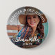 Customisez votre bouton de souvenir pour que vos amis et votre famille puissent l'utiliser lors d'un service funéraire ou commémoratif. Design présente une photographie de votre être aimé avec la citation 'FORVER IN OUR HEARTS', leur nom dans une police de script de calligraphie moderne et la date avec une superposition.