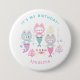 Boutons pour une fête d'anniversaire sur le thème nautique décorée de chatons de sirène mignons.