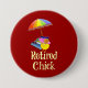 Chick à la retraite, texte blanc sur arrière - plan foncé, bouton/broche.
