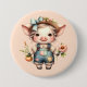Badge Rond 7,6 Cm Cochon fermier mignon dans les salons avec fleurs
