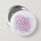 Élégant design personnalisé de bouton de Disco pour l'enterrement de vie de jeune fille de la mariée dans de belles couleurs dégradées allant du lavande au bleu pervenche et rose avec une boule disco funky, une police rétro glamour et des lumières disco scintillantes, fond aquarelle. Ce design élégant et sophistiqué est facilement adaptable à tout dîner spécial et/ou événement dansant. Recherchez ID928 pour voir d'autres produits de cette collection tendance.