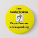 Badge Rond 7,6 Cm Difficile à entendre Me faire face en parlant jaun