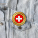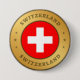 Le drapeau suisse est encastré dans une bague en faux or arrondie. Le mot "Suisse" se trouve en haut et en bas de la conception et a un effet pressé. La paire de trois étoiles décoratives les unes en face des autres, est également conçue avec un effet pressé.