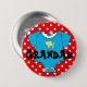 Bouton mignon de dos de goupille pour que chaque membre de la famille porte à votre baby shower. Personnalisez avec des noms. Changez le style de police en cliquant sur la "personnaliser il" - cliquez sur le texte. Rouge avec le pois blanc. Un équipement mignon de T-shirt de bébé bleu avec un petit poisson jaune.