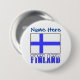 Touche ronde avec le Drapeau finlandais qui a un arrière - plan blanc avec un bleu scandinave, ou Croix nordique. Ici il montre avec le mot FINLANDE sous le drapeau. Ci-dessus, est un endroit pour votre nom, en lettres bleues, ou de quelqu'un d'autre, si vous souhaitez personnaliser un cadeau. Idéal pour une réunion de famille, un club ou un groupe de voyage.