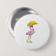 Badge Rond 7,6 Cm Flamant rose à la pluie avec parapluie