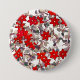 Badge Rond 7,6 Cm Fleurs rouges et feuilles gris argenté