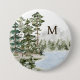 Badge Rond 7,6 Cm Forêt de pin vert monogramme et lac