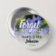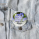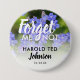 Un bouton pour les amis et la famille à porter lors d'un enterrement avec une image de fleurs bleues ne m'oubliez pas avec les mots "NE M'OUBLIEZ PAS" se référant à votre proche décédé avec son nom et date de décès.