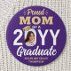 Badge Rond 7,6 Cm Graduate Photo Proud Mom Modern Purple and Gold
